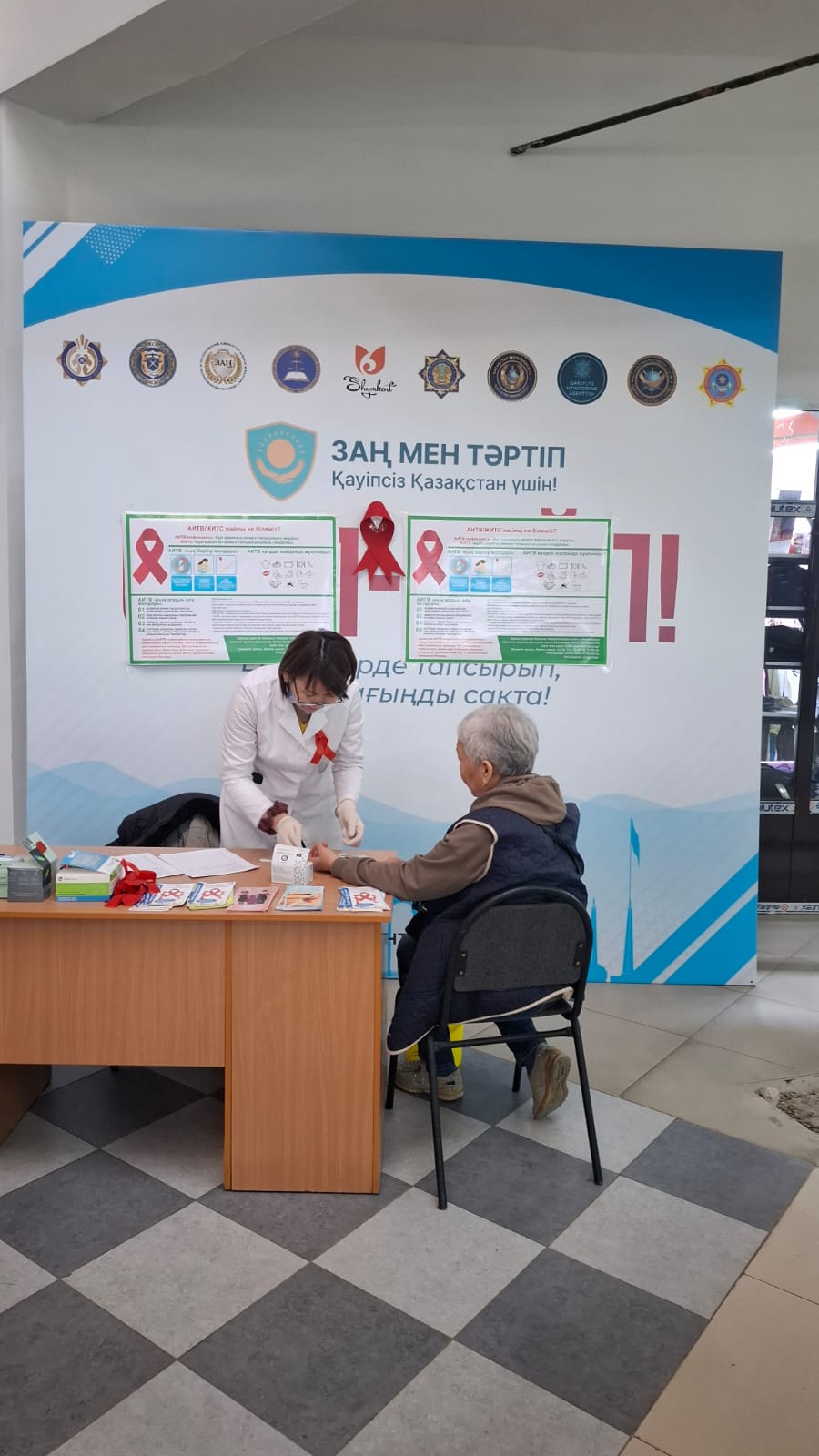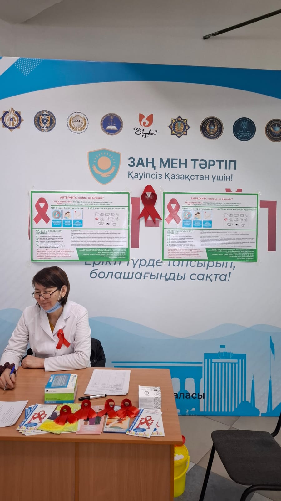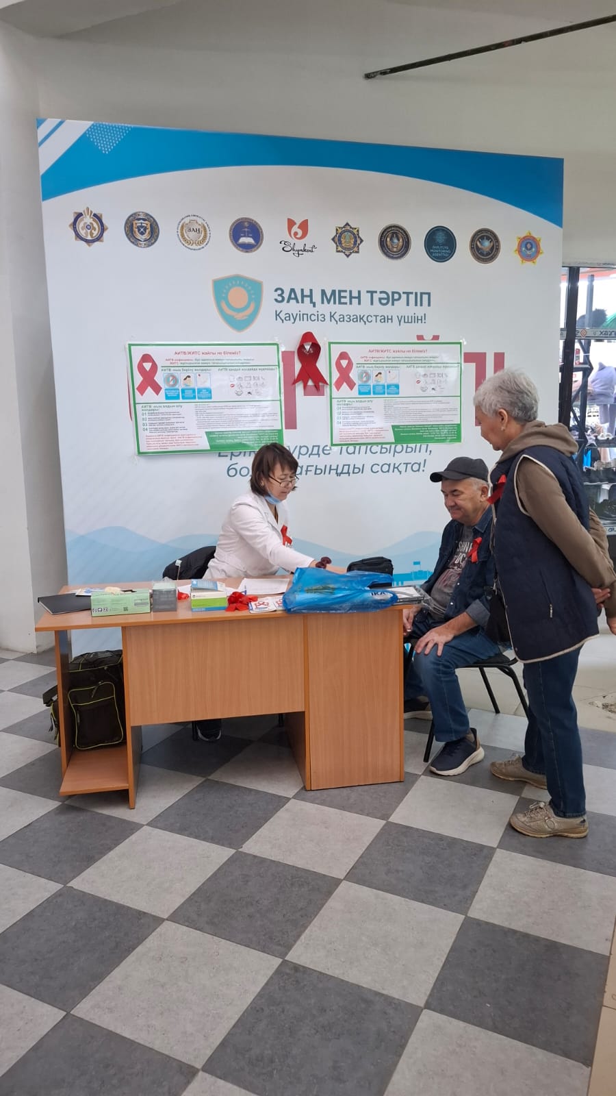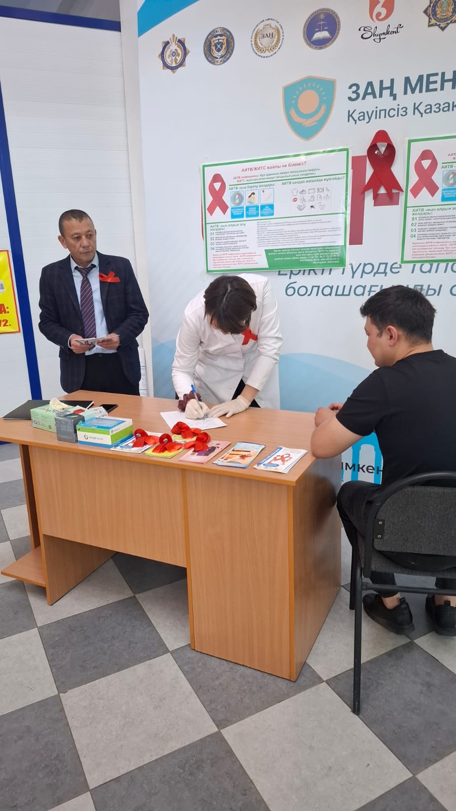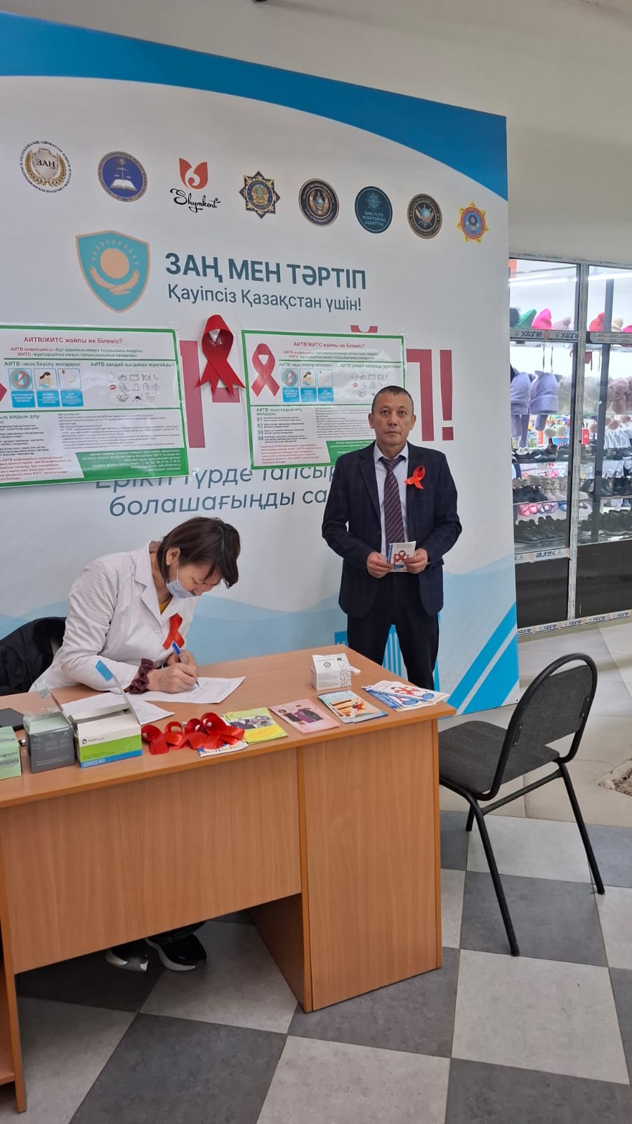 Қазақстан Республикасында Дүниежүзілік ЖИТС - пен күрес күніне арналған «АИТВ - ға қарсы күрестегі қиындықтардан тиімді өзгерістерге:» ұранымен 2025 жылғы 10 қарашадан 10 желтоқсанға дейін жүргізілетін ақпараттық науқаны жалгасуда. 13.11 - 14.11.2025 жылы ЖИТС орталығының қызметкерлері Есенбеков.Т.А,Төреханова.Қ. және Бекжан базарының әкімшілігімен бирлесе отырып Магнум сауда орталығында және Халыққа қызмет көрсету орталығында қызметкерлер, халық арасында АИТВ/ЖИТС алдын алу және денсаулығын қорғау, және адамдарға қатысты стигма мен кемістушілікті азайту, салауатты өмір салтын насихаттау мақсатында акция жүргізіліп, брошюралар, ақпараттық материалдар таратылып, АИТВ - ға экспресс тест жүргізілді.