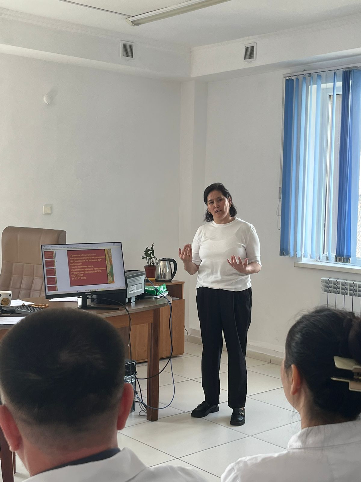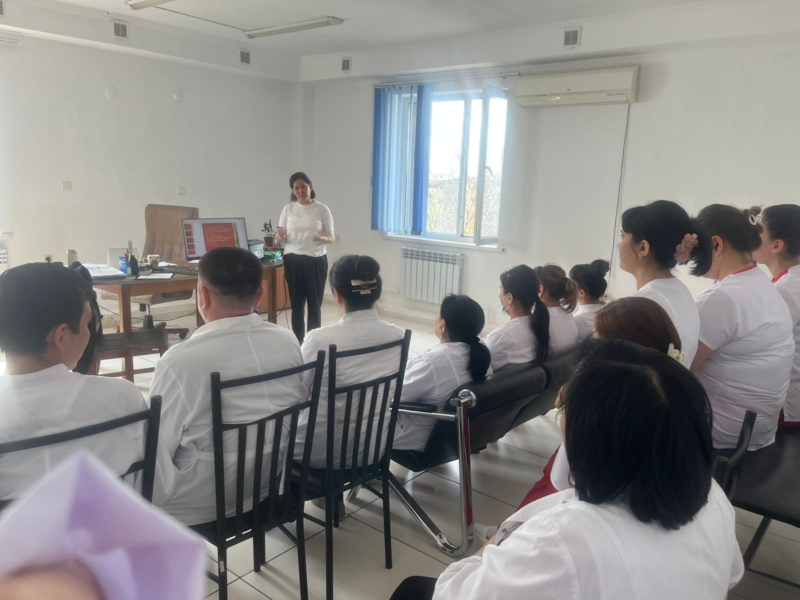 Шымкент қаласы денсаулық сақтау басқармасының 26.01.2026 ж. №28 - н/қ бұйрығын орындау мақсатында «ЖИТС - тің алдын алу және оған қарсы күрес жөніндегі орталығы» МКҚК мамандары дәрігер эпидемиолог А.Т. Байкасова «Ай - нұры» медициналық орталықта медициналық қызметкерлеріне оқу - әдістемелік көмек көрсету жұмыстарын жүргізді.