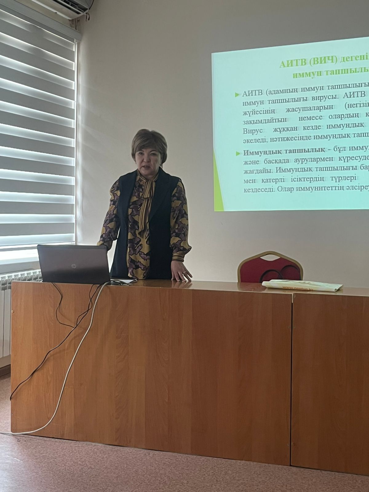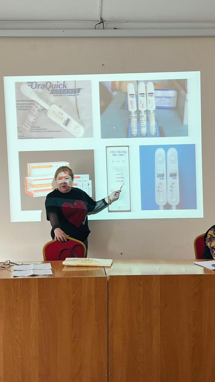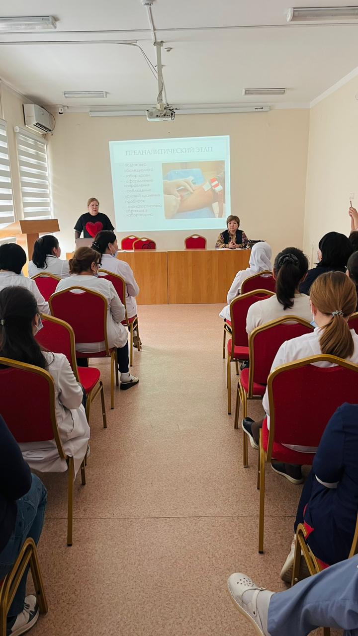 Іс-шараның барысында медицина қызметкерлерінің АИТВ инфекциясы бойынша ағымдағы жағдай туралы хабардар болу деңгейін арттыру, АИТВ-ның оң мәртебесі бар адамдарды ерте анықтау, сондай-ақ диагностиканың, емдеудің және профилактиканың жаңа әдістерін таныстыру, пациенттерді жүргізудің пәнаралық тәсілін қалыптастыру, АИТВ-мен өмір сүретін адамдарға қатысты стигматизация (таңбалау) мен кемсітушілікті төмендету, антиретровирустық терапияның маңыздылығы жайында мәлімет беру. Зертхана маманы С.Д. Сметова АИТВ-инфекциясын зертханалық тексерудің аналитикалық алдындағы кезеңі түралы, АИТВ-инфекциясына жедел тестілеу (талдау және нәтижелерді бағалау), сыртқы сапаны бағалау (СПБ – кептірілген түтік үлгілері) бойынша ақпарат берді.