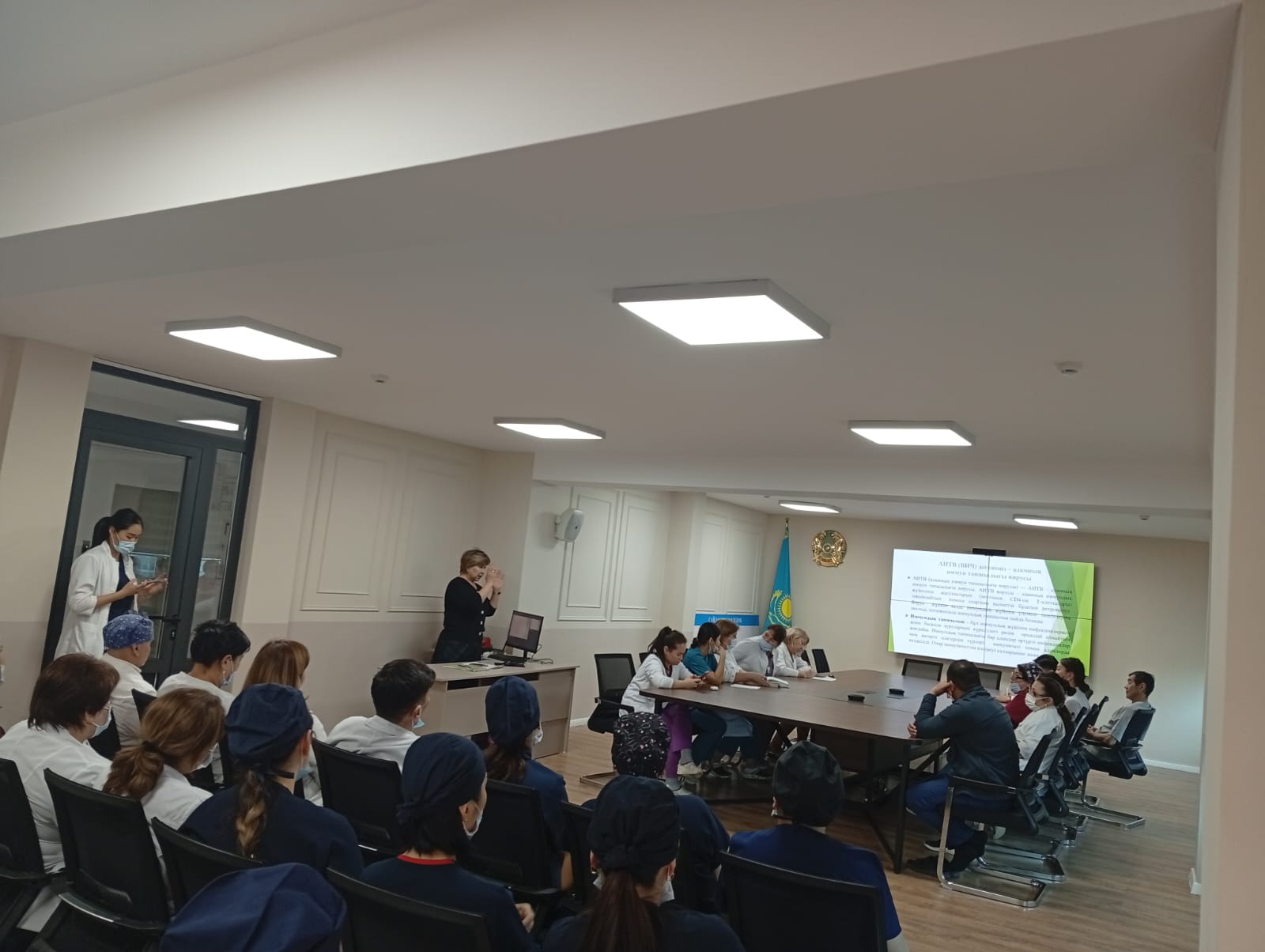 Зертхана маманы С.Д. Сметова АИТВ-инфекциясын зертханалық тексерудің аналитикалық алдындағы кезеңі түралы, АИТВ-инфекциясына жедел тестілеу (талдау және нәтижелерді бағалау), сыртқы сапаны бағалау (СПБ – кептірілген түтік үлгілері) бойынша ақпарат берді.