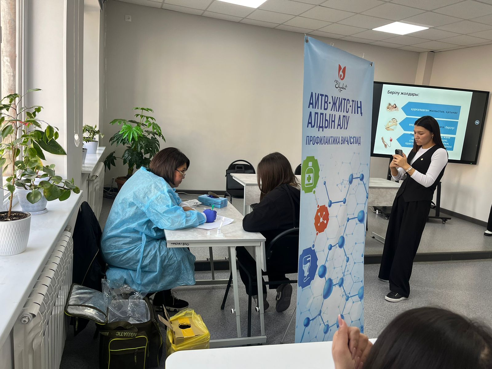 Сонымен бірге ЖИТС - тің алдын алу шаралары және адамдар арасында «Стигма және кемсітушіліктер» болдырмау бойынша айтылды.Өз еркімен тексерілем деушілер жедел тестпен АИТВ инфекциясына тексеріліп,нәтижесін алды.