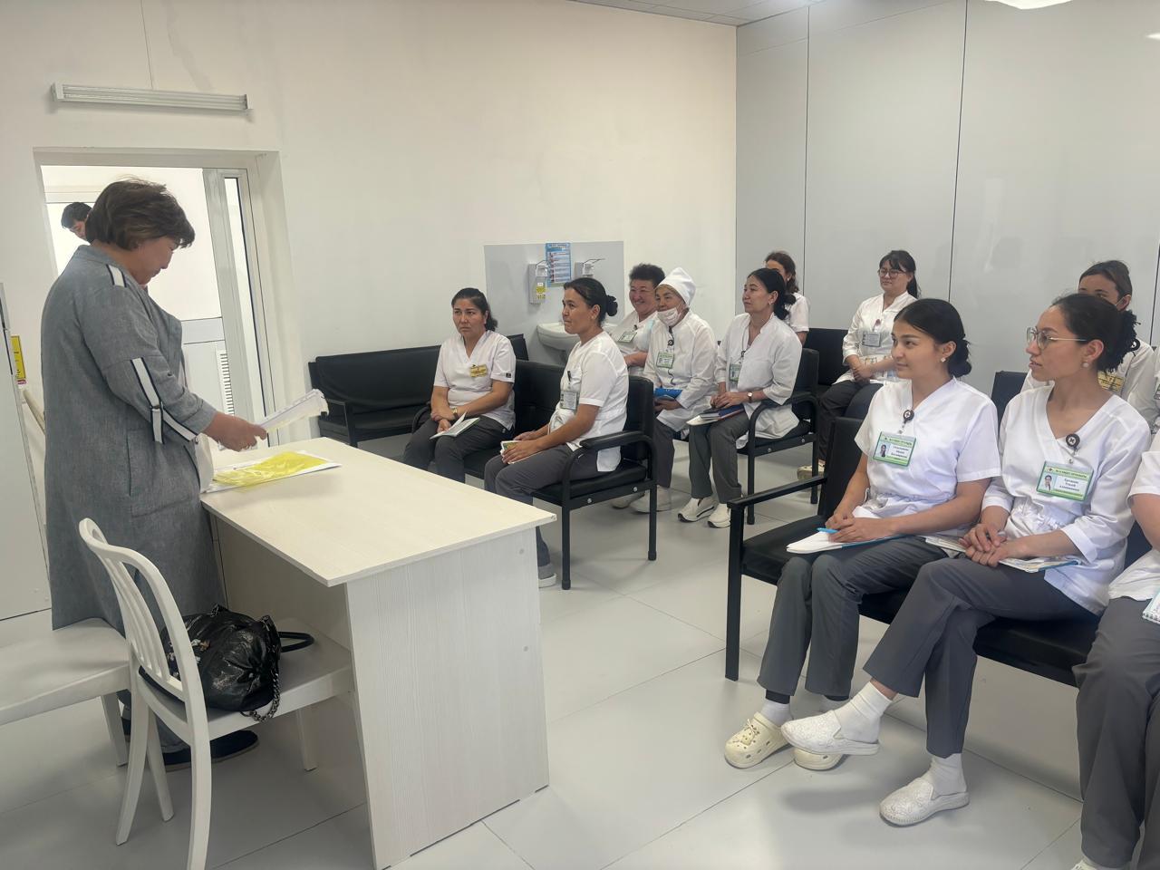 Шымкент қаласы денсаулық сақтау басқармасының 26.01.2026 ж. №28 - н/қ бұйрығын орындау мақсатында «ЖИТС - тің алдын алу және оған қарсы күрес жөніндегі орталық» МКҚК - нің эпидемиолог дәрігері Ф.Т. Абдиева, Шымкент қаласындағы «ЖШС №14 емдеу орталығының» медициналық қызметкерлеріне оқу - әдістемелік көмек көрсету жұмыстарын жүргізді.