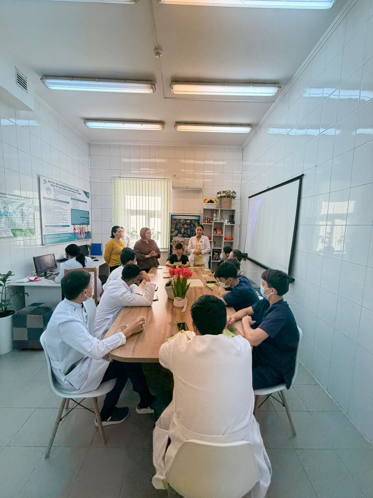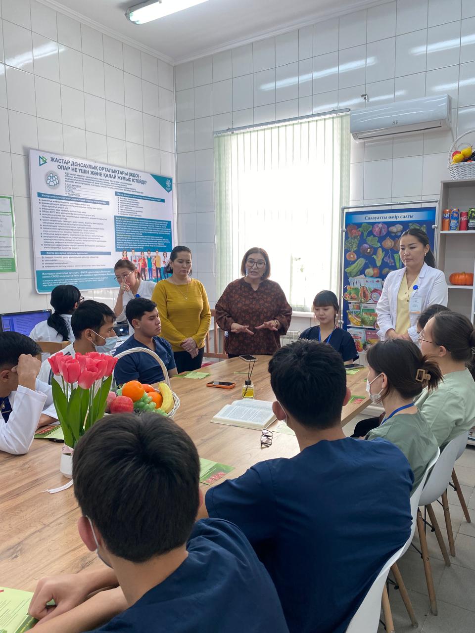 Шымкент қаласының №6 емханасындағы Жастар денсаулық сақтау орталығында ЖИТС орталығының мамандармен бірлесіп, жастардың арасында ерте жүктілік, жасөспірімдер арасындағы суицидтік мінез-құлықты алдын алу және АИТВ-ның өзекті мәселелері мақсатында іс шара өткізілді.