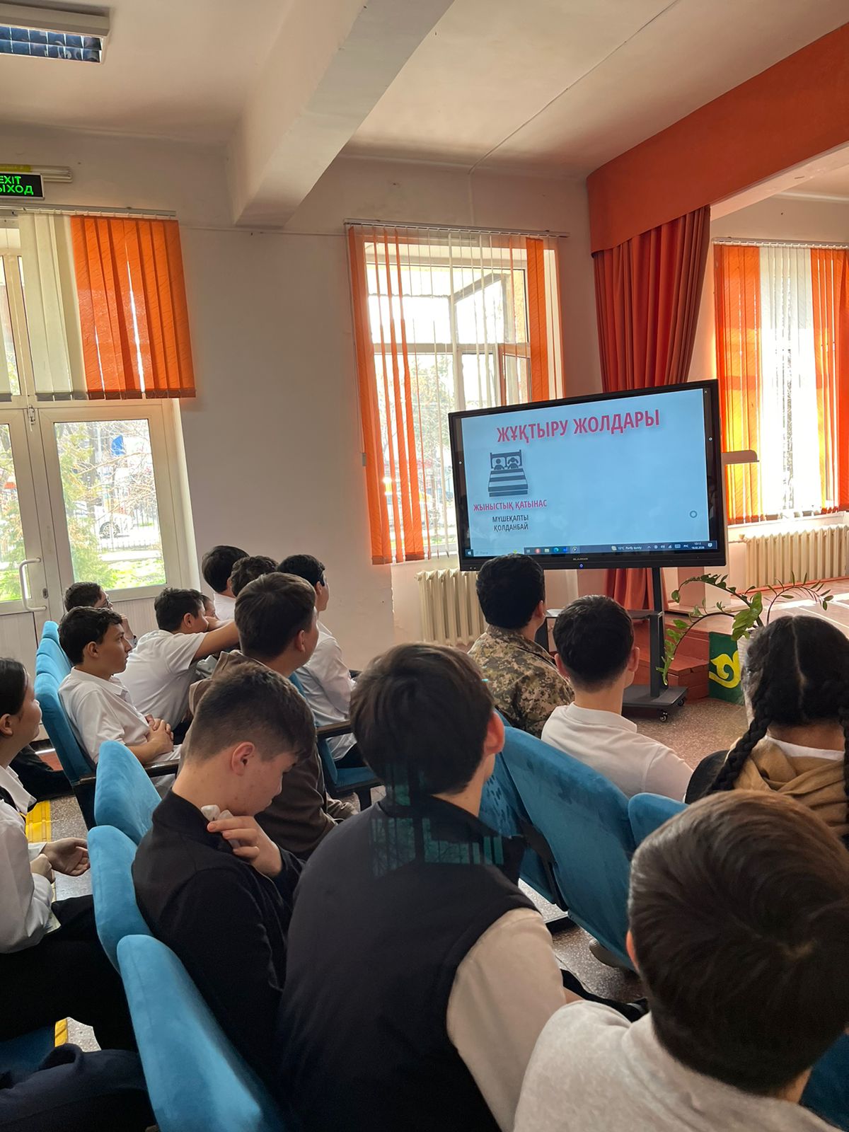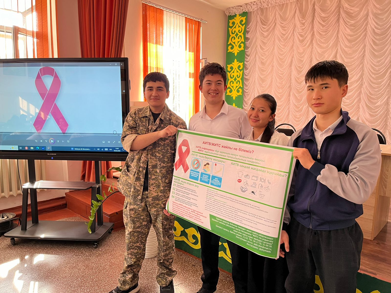АИТВ - инфекциясын жастар арасында алдын алу АИТВ –мен өмір сүретіндерді кемсіту мен таңбалаудан қорғау жөнінде түсіндіру жұмыстарын жүргізді. Бейнероликтер көрсетілді,парақшалар,брошюралар таратылды.Оқушылар тарапынан қойылған сұрақтарға толық жауап беріліп қанағаттандырылды.